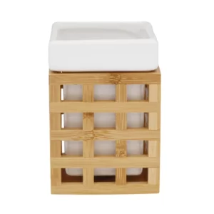 Porta Objeto de Banheiro Cerâmica Quadrado Madeira Clara Fudji Sensea