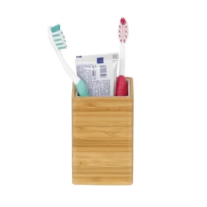 Porta Objeto de Banheiro Madeira Quadrado Bamboo Natural Sensea